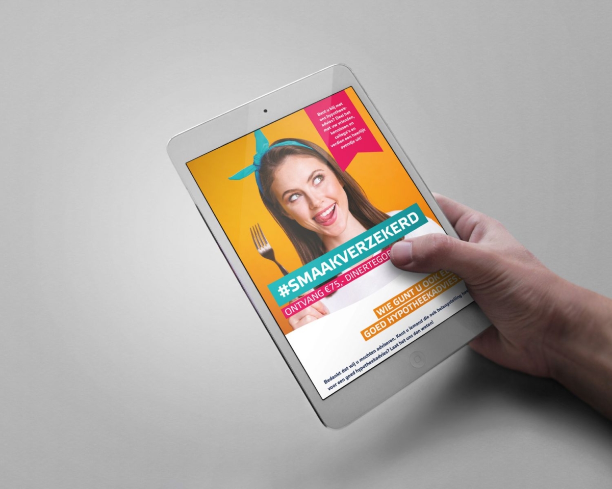 Smaak verzekerd! Vanwege het succes gaat Heilbron ook in nieuwe stijl verder met haar dinercheque actie voor tevreden hypotheekklanten. Bij lekker in vorm goten we de bestaande actie niet alleen in een nieuw huisstijljasje, maar ook zetten we deze gelijk om in een digitale versie die een groter gebruiksgemak kent dan de papieren folder: een makkelijk te mailen pdf met een aanklikbare link naar een online formulier.