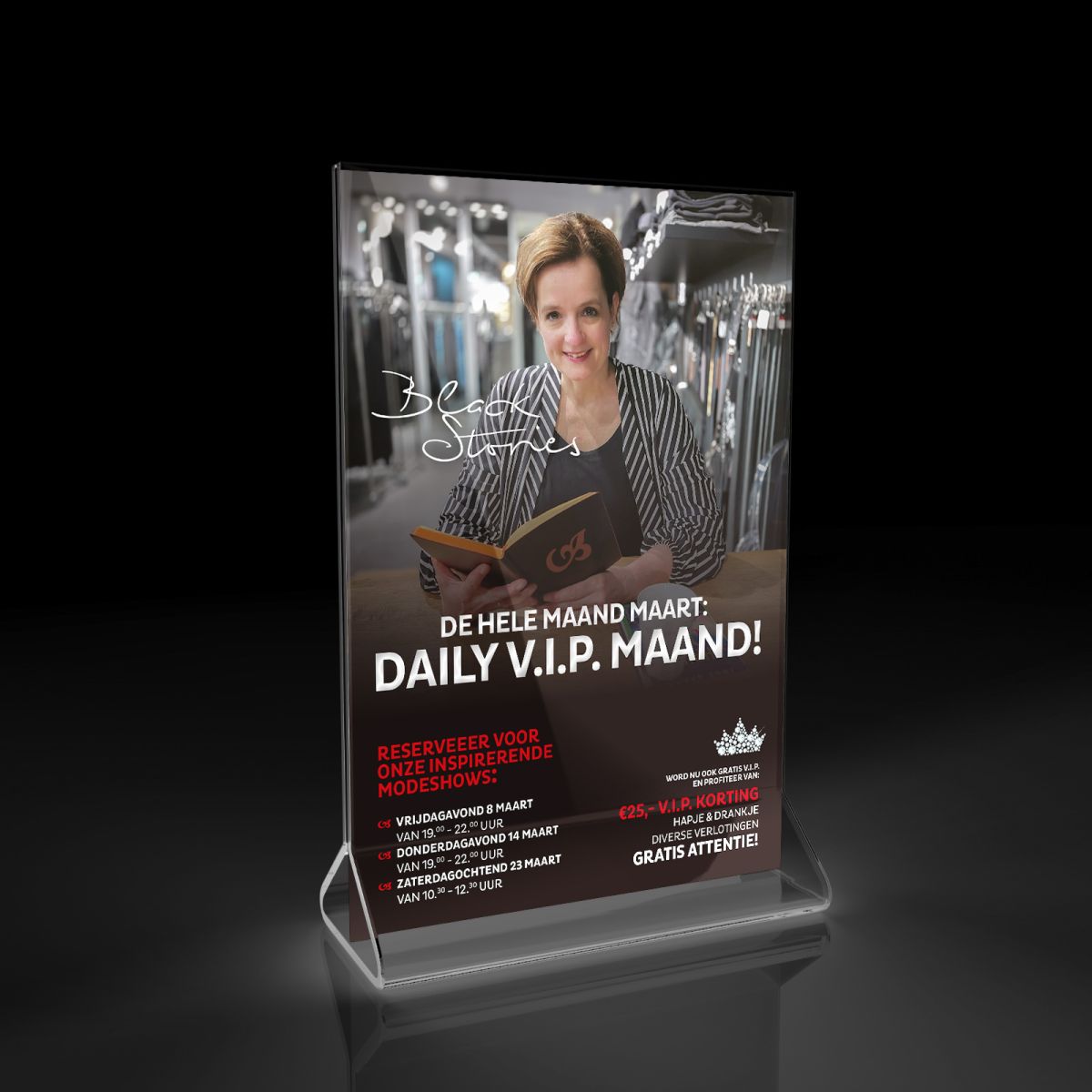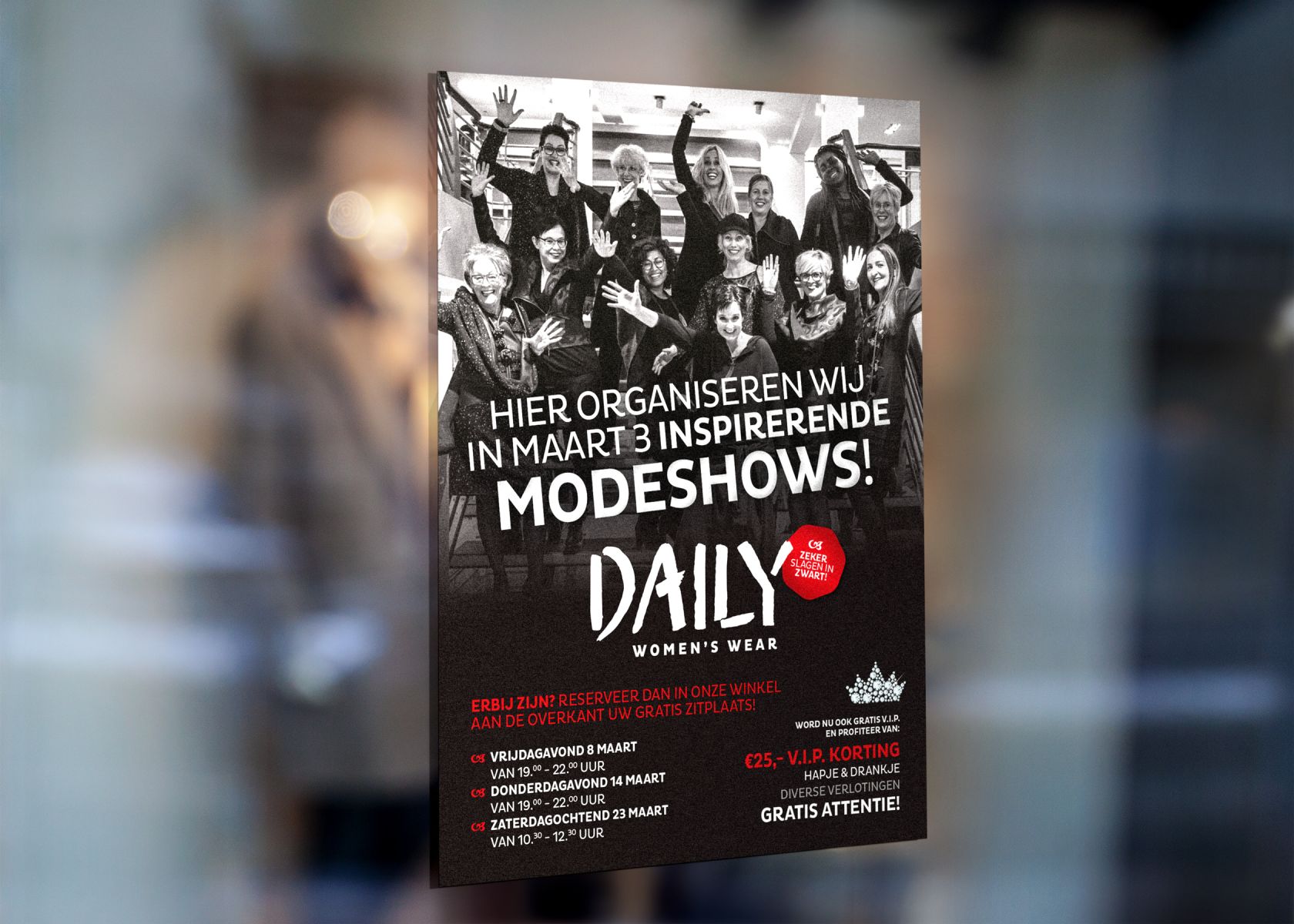 Bij lekker in vorm mochten we er weer een mooie campagne voor ontwikkelen, waarin dit keer WhatsApp voor het eerst een belangrijk kanaal vormt. Verder ontwierpen we o.a. een meegeefflyer, een baliedisplay en raamposters voor de modeshows, een nieuwsbrief, een VIP webpagina en diverse social media berichten.
