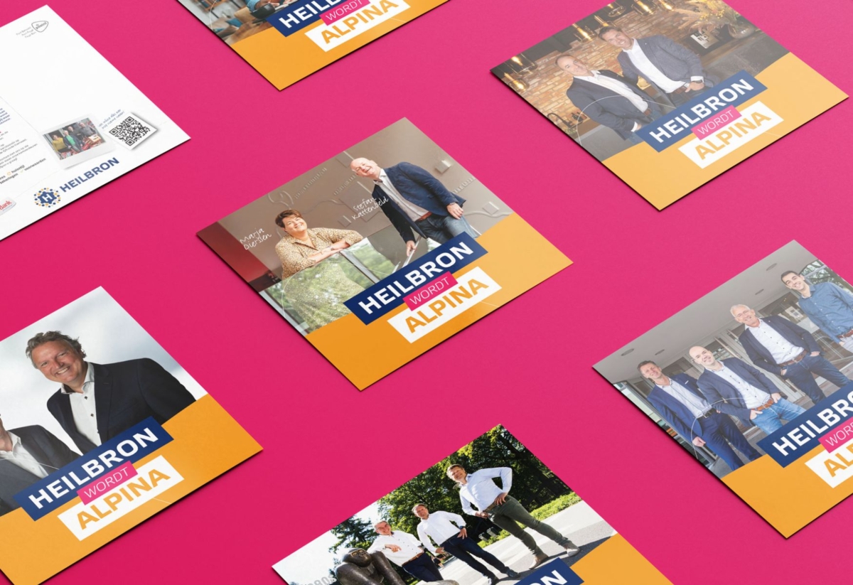 De komende tijd maakt de naam Heilbron in heel Nederland plaats voor de nieuwe naam Alpina. Voor de diverse vestigingen mochten we bij lekker in vorm items ontwikkelen voor de bijbehorende naamswijzigingscampagne. Denk hierbij aan diverse mailings en advertenties vóór en ná de naamswijziging.