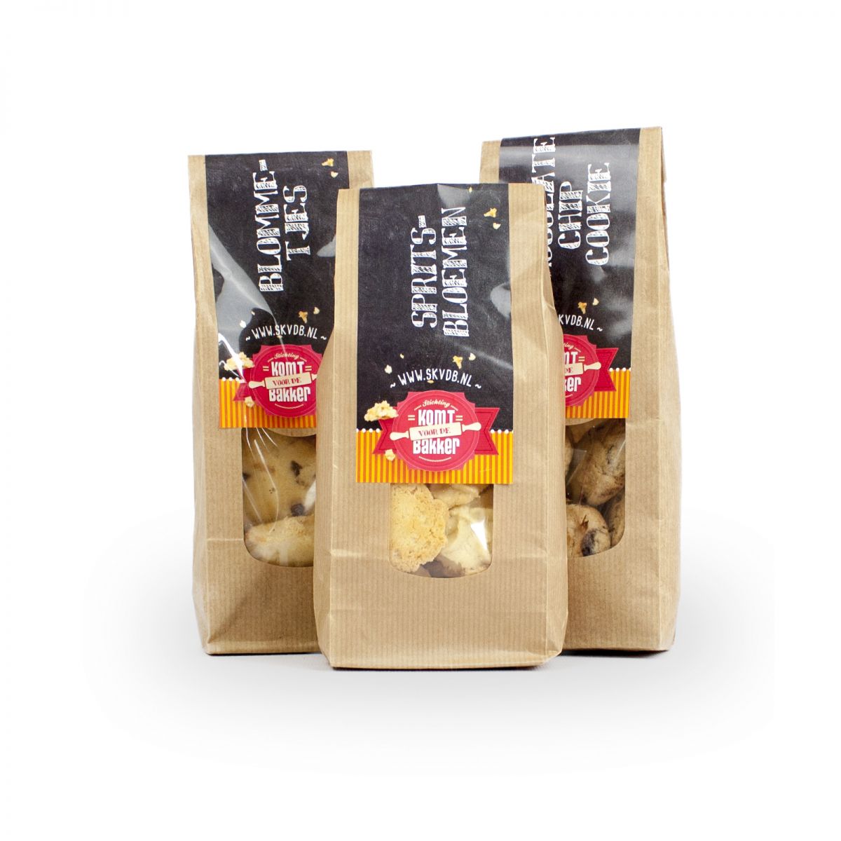 De cliënten van Stichting Komt voor de Bakker zijn een kei in het bakken van over- en ovenheerlijke koekjes. En die verdienen natuurlijk een mooie verpakking. lekker in vorm verzorde het ontwerp van de diverse etiketten. Op de achterzijde vind je niet alleen de ingrediëntenlijst, maar ook een kleine impressie over de bakkers! De koekjes worden o.a. verkocht via bakwinkel Gaabs en sluiten mede daarom ook goed aan bij de etikettenlijn voor de bakmixen daar.