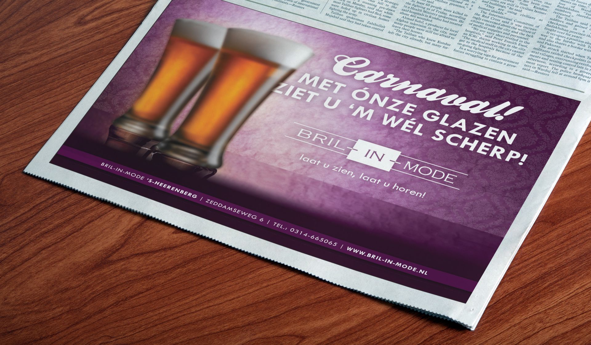 Alaaf! Speciaal voor komende carnaval ontwikkelde lekker in vorm voor Bril-in-Mode een inhakende advertentie met een knipoog.