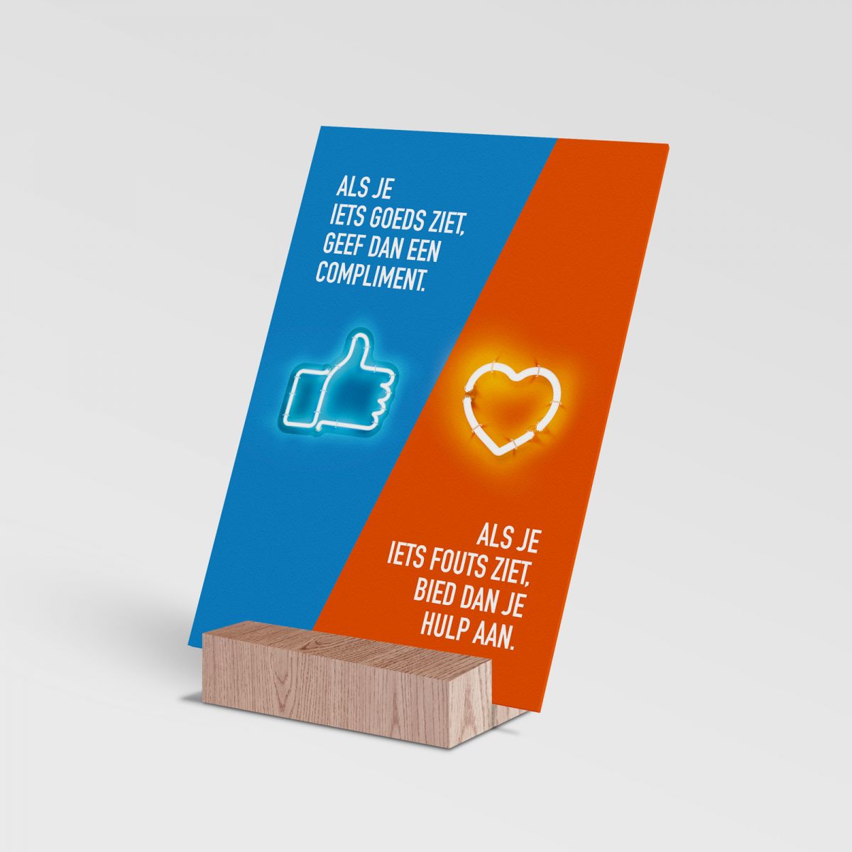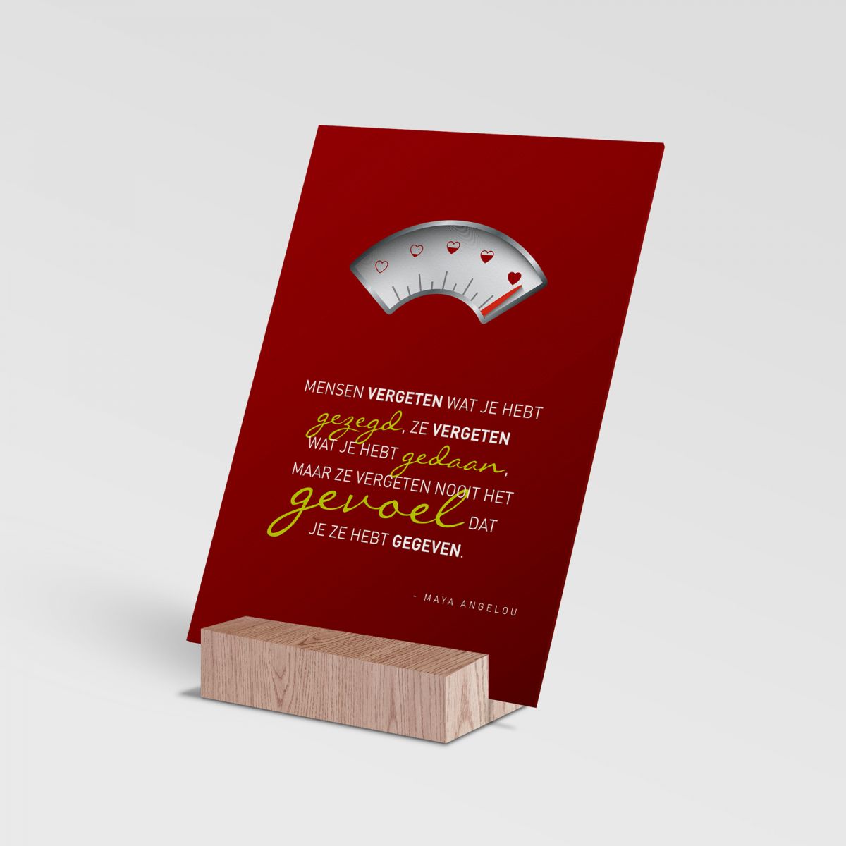 Vanwege het grote succes is de bestaande lijn inspiratiekaarten van Gastvrijheid in Bedrijf uitgebreid tot een set van 12 en vergroot naar een lekker A5 formaat. Bij lekker in vorm voorzagen we elke quote weer van een passend beeldconcept.