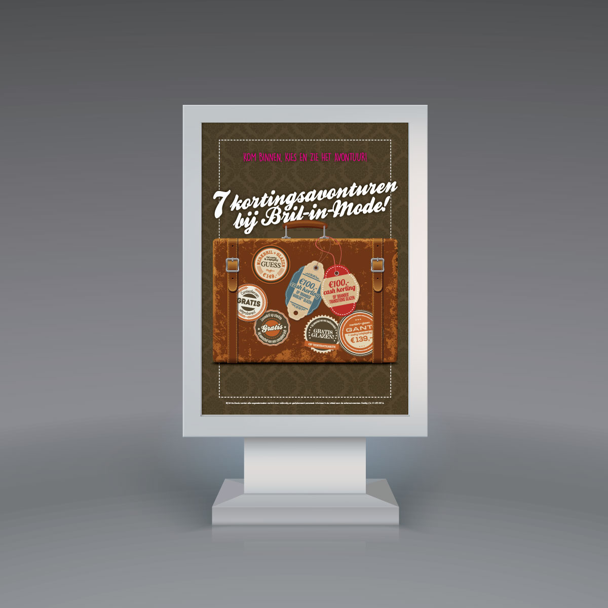 Voor de grootste kortingsavonturen hoef je deze zomer niet ver te reizen. Bril-in-mode trakteer namelijk op maar liefst 7 avontuurlijke acties, gewoon in Oost-gelderland! De campagne wordt uitgebreid onder de aandacht gebracht middels een direct mailing (presale) naar vaste klanten, huis-aan-huis flyers en diverse items in en rondom de winkel en online.