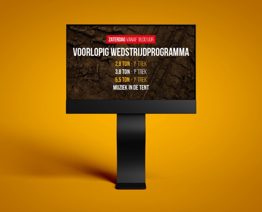 Bij TrekkerTrek Nieuw Wehl draait alles om pk’s, publiek en plezier. Dit jaar was er een mooi extraatje: een groot LED-scherm direct naast de wedstrijdbaan. Perfect om bezoekers welkom te heten, het programma in beeld te brengen en de sponsors in het zonnetje te zetten.