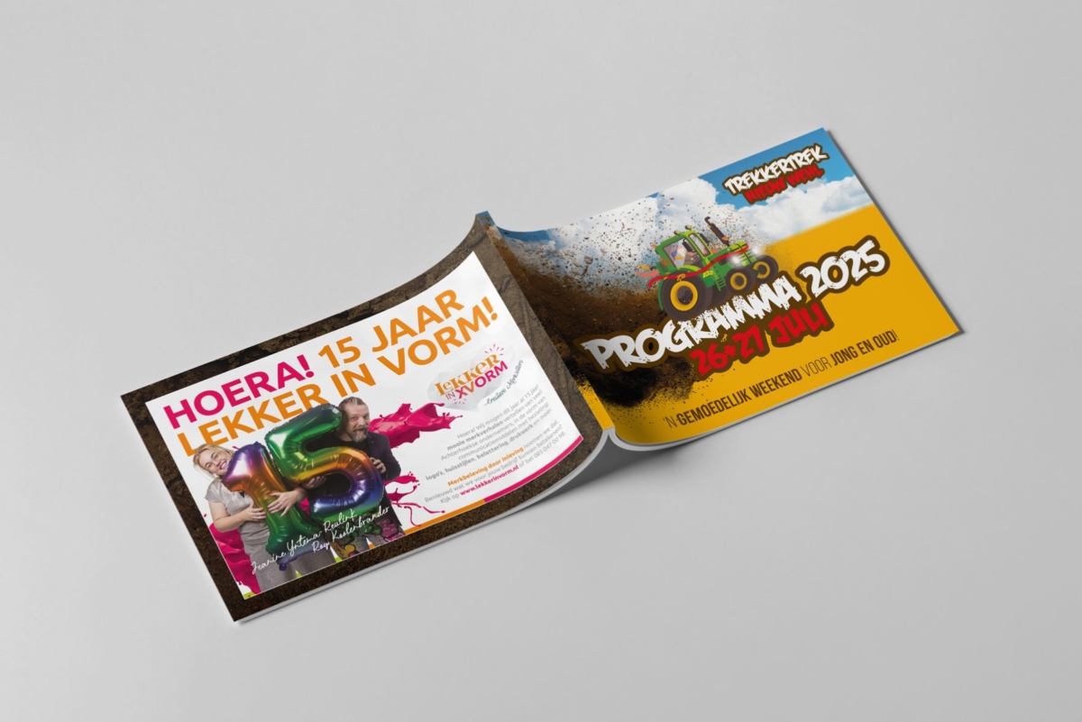Niets missen tijdens Trekkertrek Nieuw Wehl? Met dit handige programmaboekje vol wedstrijschema’s ben je op de hoogte van alle activiteiten. Daarnaast is het een geschikt medium om alle sponsors onder de aandacht te brengen. Natuurlijk mocht ook Lekker in Vorm niet ontbreken!