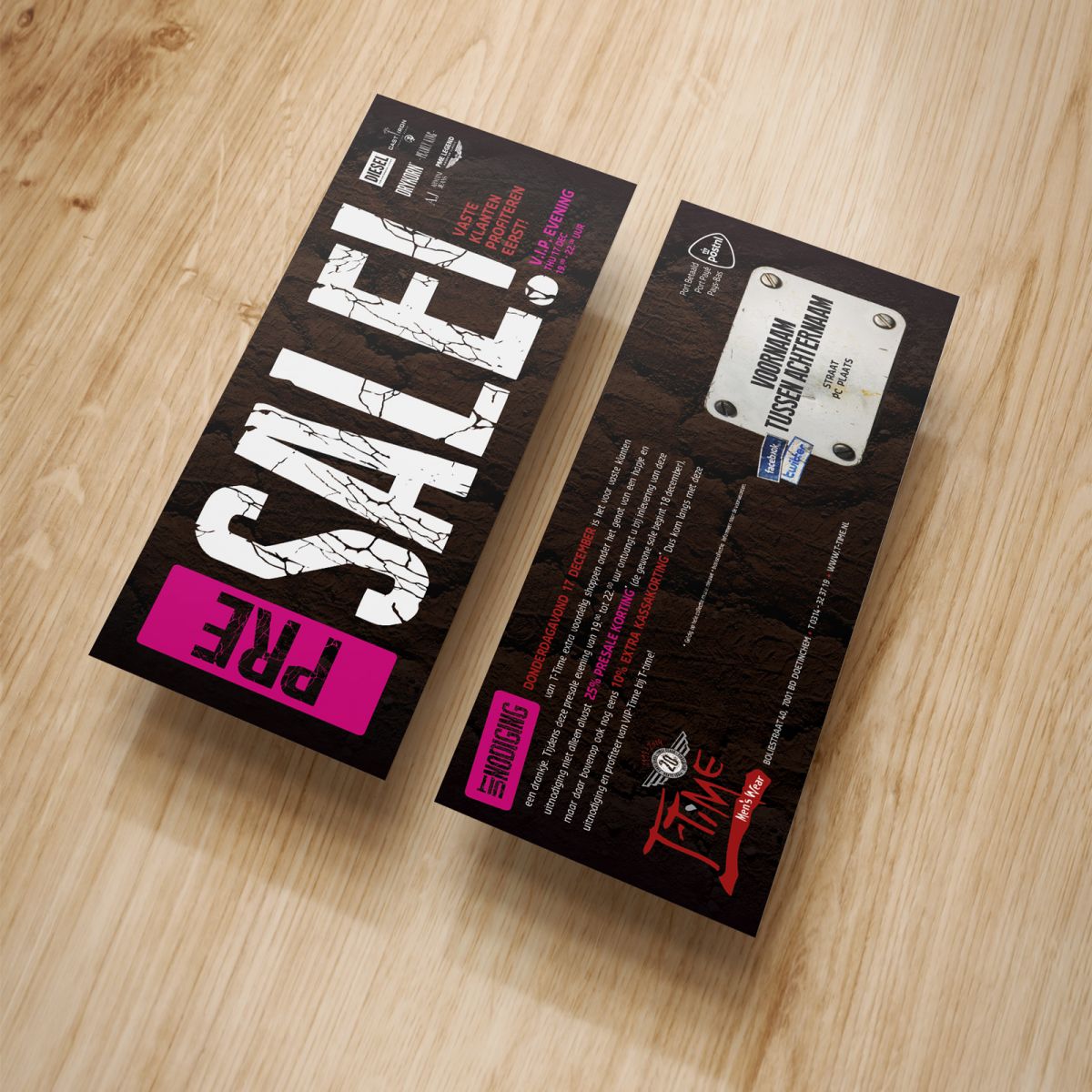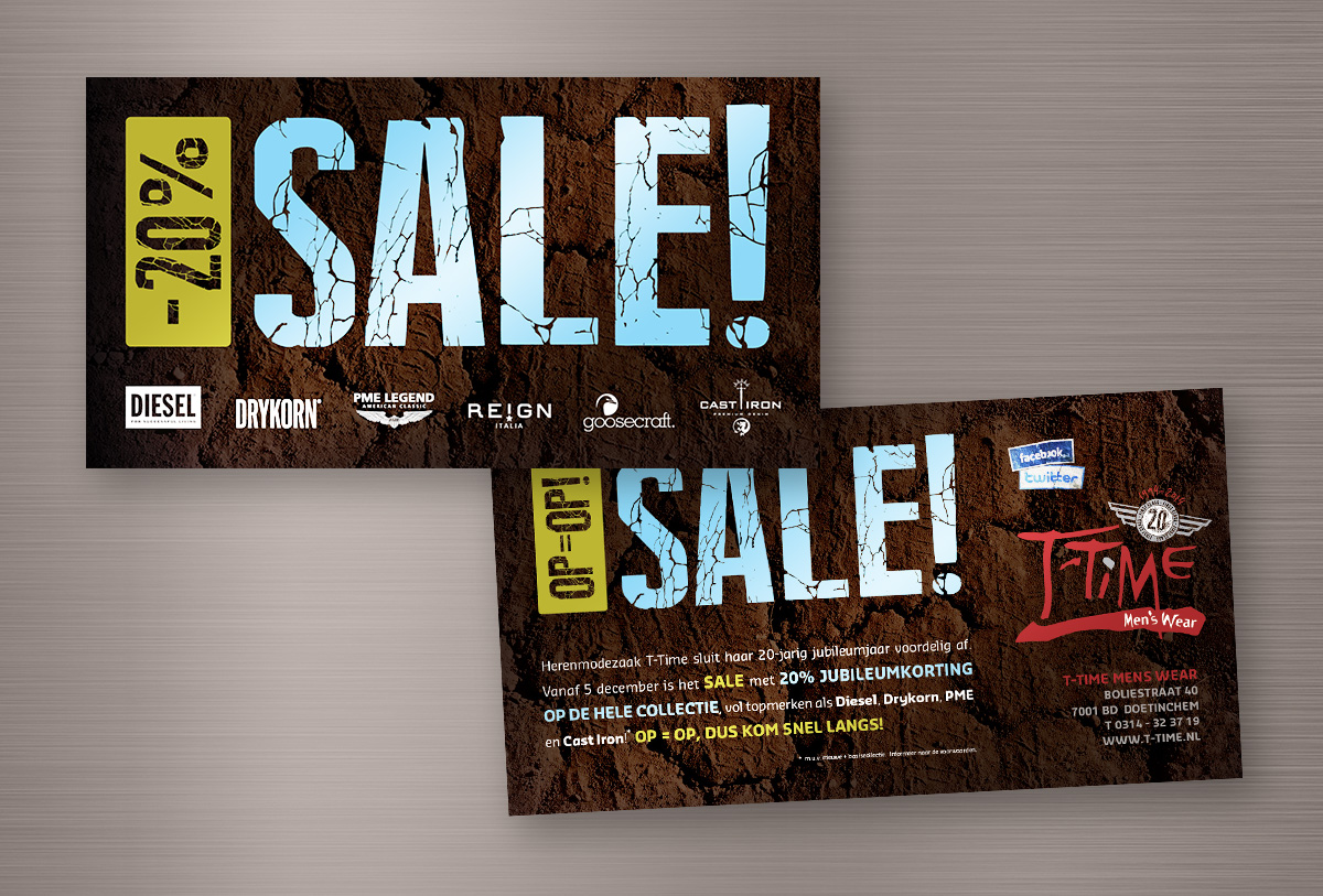 Ook dit jaar is het weer sale bij T-Time! lekker in vorm voorzag het ontwerp van vorig jaar van frisse kleuren, nieuwe teksten en maakte er ook een huis-aan-huis flyer bij.