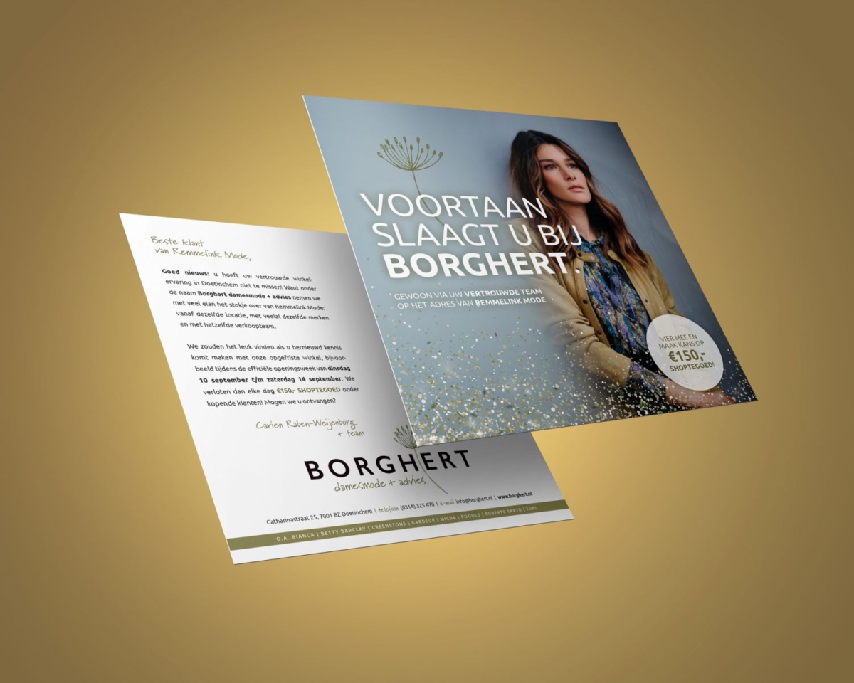 De komst van Borghert is goed nieuws voor klanten van het gestopte Remmelink Mode: Borghert neemt namelijk het stokje over vanuit dezelfde locatie, met veelal dezelfde merken en met hetzelfde verkoopteam!