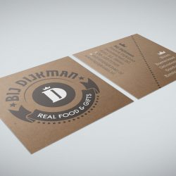 Dit vierkante visitekaartje van Bij Dijkman valt lekker op! We hebben het laten drukken op kraftpapier met extra dekwit, zodat het een pure en creatieve uitstraling krijgt.